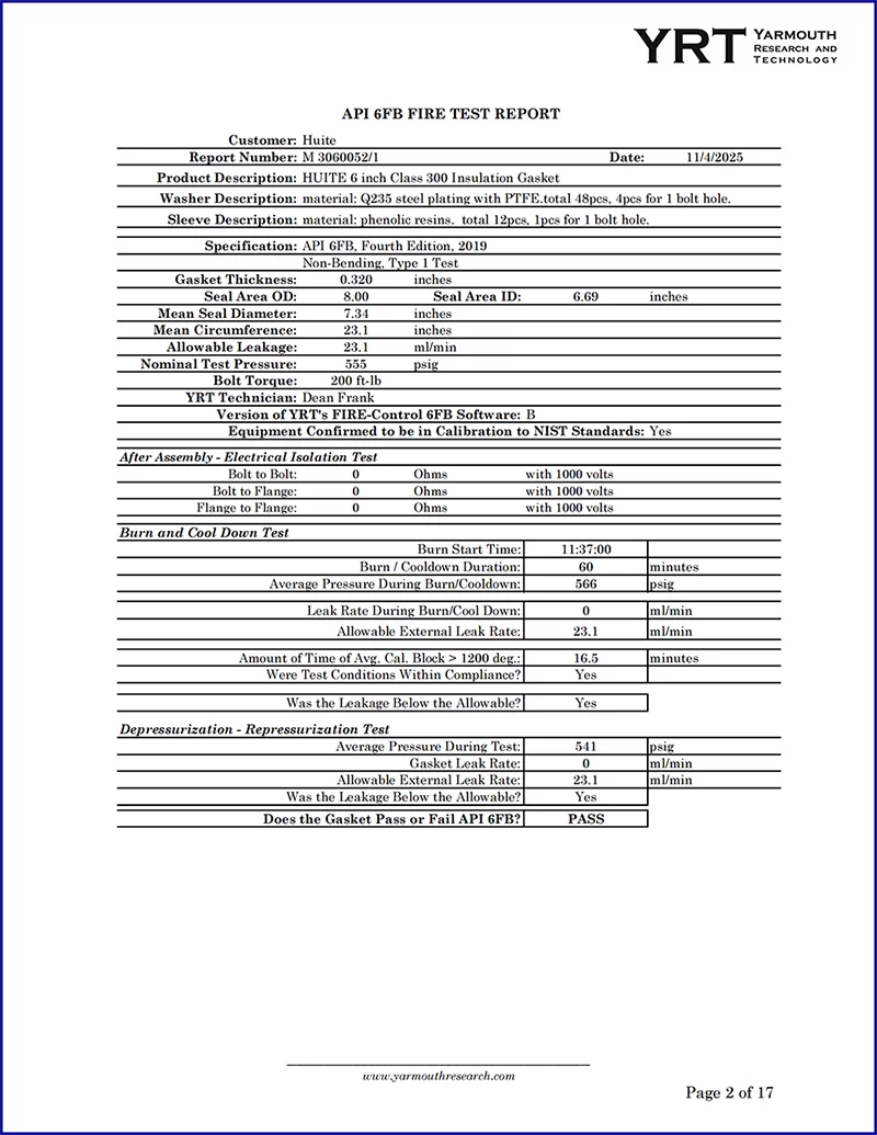 Joint d’isolation HUITE de 6 pouces de classe 300, qui a réussi le test d’incendie API 6FB, qui est le seul test de sécurité incendie reconnu pour les joints.